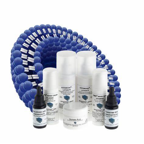 Das modulare System erlaubt über drei Millionen Kombination von Basiscremes oder -Gele mit über 30 Wirkstoffkonzentraten, z. B. Boswellia, Hyaluron, Vitamin C & E oder Zink.